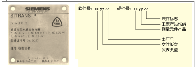 西门子压力变送器的铭牌另一侧为许可证牌上面包含一些关于硬件版号和出厂注册号等内容的信息。